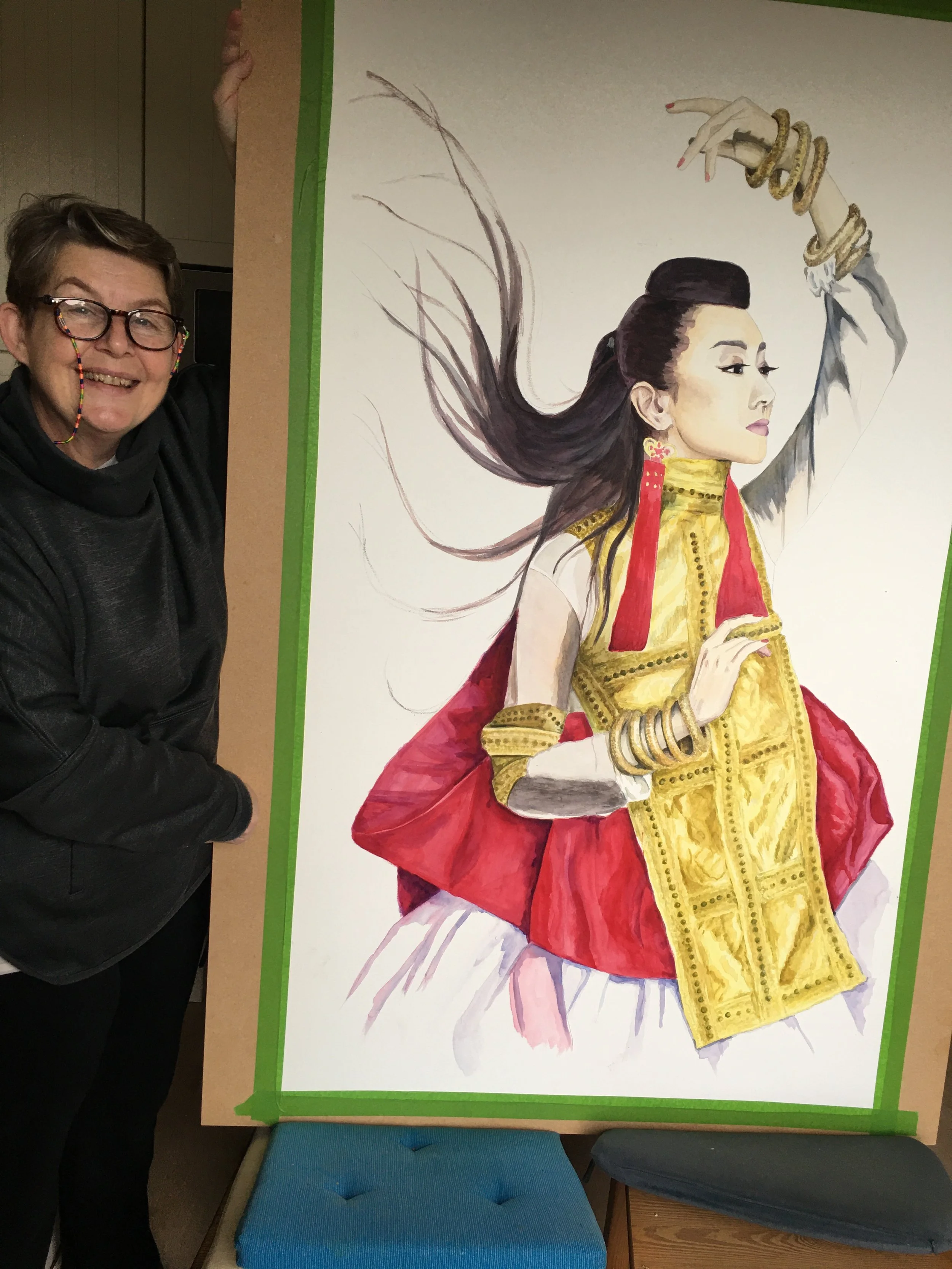 Painting a portrait is about capturing the feeling of the person. With this watercolour I hope to reveal the sense of movement of the amazing singer/composer Sa Dingding.